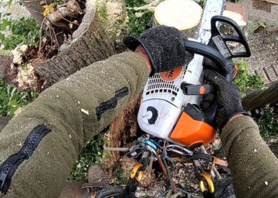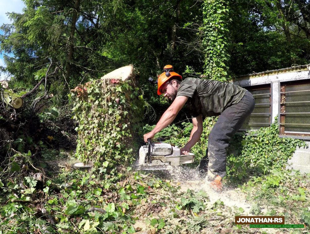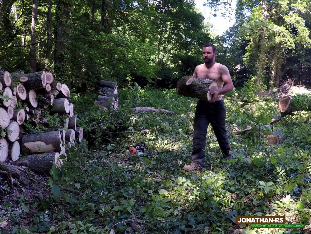 Création de pelouse / Débitage billes de chêne et découpage de la souche